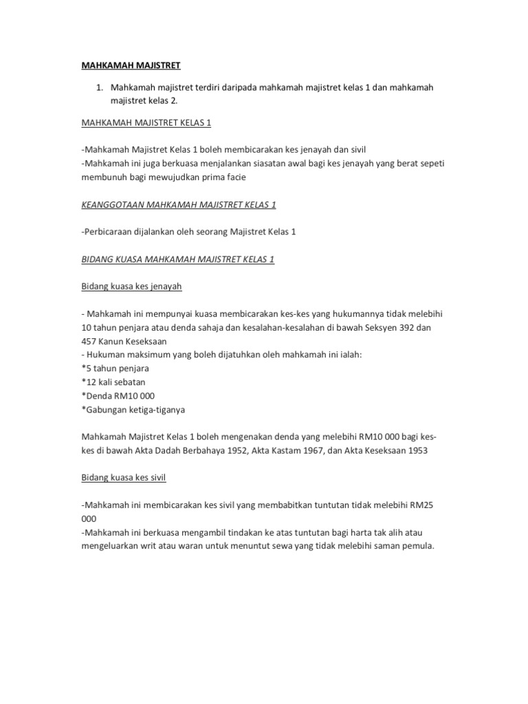 • majistret kelas pertama tidak boleh menjatuhkan hukuman penjara melebihi 5 tahun penjara. Prosesnya mudah sahaja dan murah! Dalam keadaan lain apabila sesuatu perkara melibatkan pertikaian fakta yang besar, ia adalah lebih baik untuk tindakan (kes mahkamah) dimulakan dengan cara writ saman. Meluluskan semua kes writ distress dan saman penghutang penghakiman dan writ pelaksanaan bagi mahkamah majistret. Writ saman (pembinaan) oleh dan terhadap kerajaan 50. Kod 21ncc writ saman (dagang) oleh dan terhadap kerajaan Mengawal selia kakitangan pejabat pendaftaran mahkamah majistret sivil. So is this 'mahkamah writ' real? Arahan amalan bil.2/1994 litaran mahkamah majistret (pindaan kepada arahan amalan no.5 tahun 1993) mahkamah litar. Mendengar kes untuk pengurusan kes kali pertama bagi mahkamah sesyen sivil dan mahkamah majistret sivil (kes kemalangan) seperti arahan hakim penyelia sivil kota bharu. B) rayuan sivil dari mahkamah sesyen ke mahkamah tinggi: Dalam mahkamah majisret di shah alam dalam negeri selangor darul ehsan, malaysia guaman no. Di mahkamah, majistret akan mengendalikan kes.